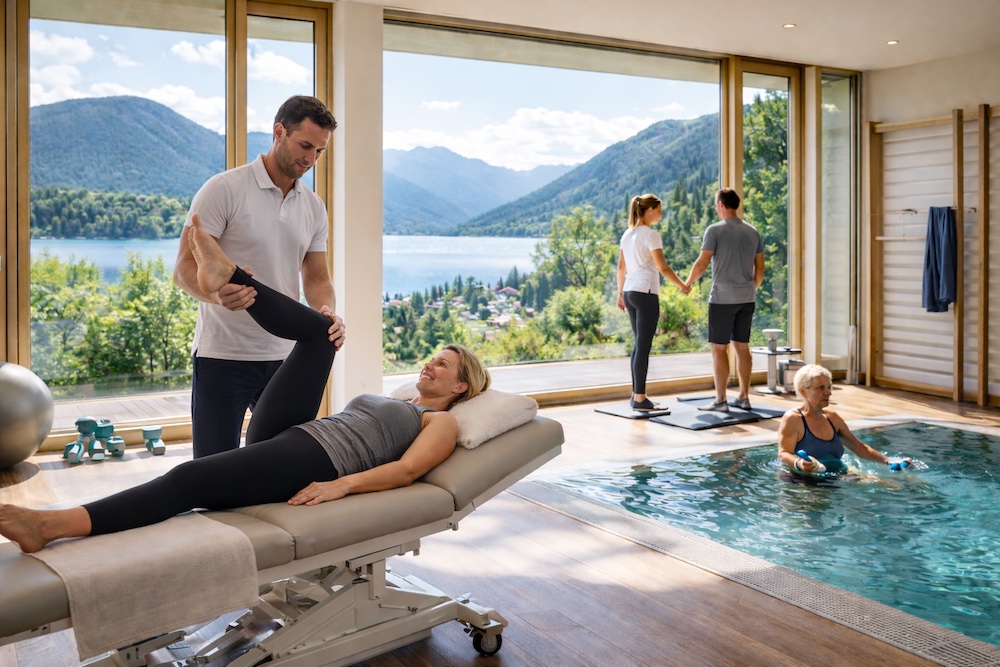 Nicht zu unterschätzen ist die wachsende Zahl von Menschen, die gezielt für eine mehrwöchige Rehabilitation an den Tegernsee reisen, häufig nach orthopädischen oder unfallchirurgischen Eingriffen.